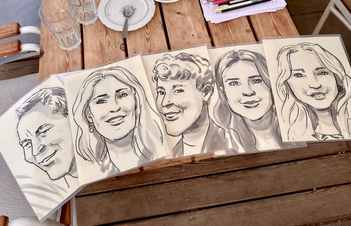 Based in Copenhagen, our speed portrait artist is available for private parties and corporate events in Denmark, Scandinavia, and worldwide.
