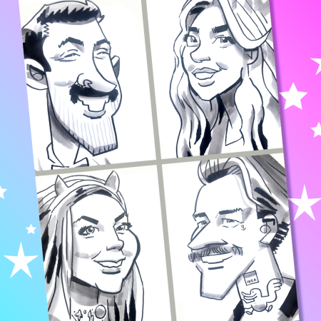 From playful caricatures to realistic portraits, this live event artist provides a variety of styles, perfect for breaking the ice and capturing memories.