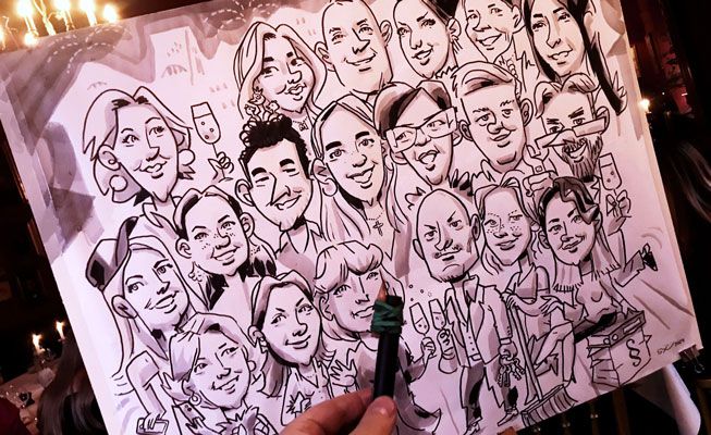 Giving caricature art a more realistic twist, our portrait artist creates lasting memories for family gatherings, weddings, and trade shows.