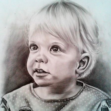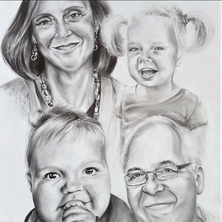 Our painter can use acrylics for colourful portraits on canvas and paper, pencil for a black and white portrait, or digital paint and send the file