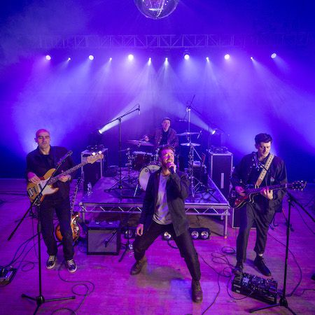 The main line-up features vocals, guitar, bass, and drums, performing a mix of modern hits, 90s and 00s favourites, as well as vintage classics