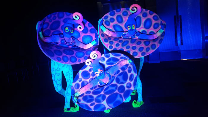 Our Psychedelic UV Act South Africa is ideal for both day and night events, though the UV costumes respond best under blacklight in darker conditions. The mysterious characters and oddly psychedelic show are appealing to both adults and children.