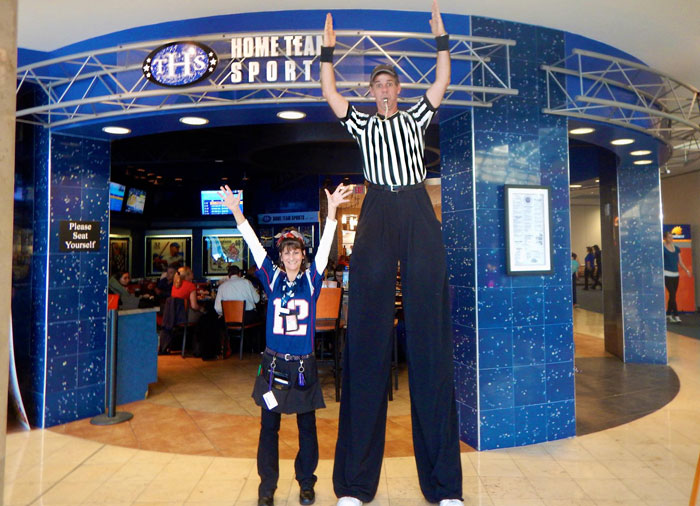 This incredibly engaging referee stilt walker brings interactive fun to audiences of all ages and grabs everyone's attention.
