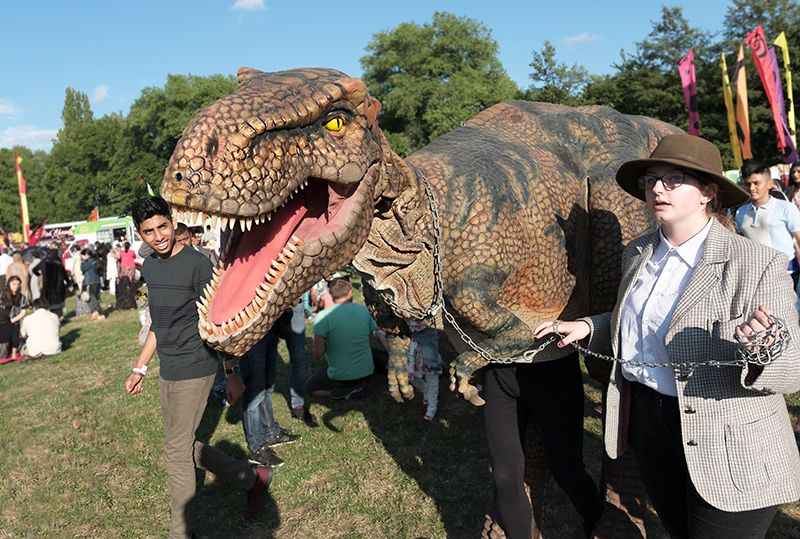 Pet our friendly dinosaur, become his buddy, but watch out—he might chase you around the venue if he gets hungry!