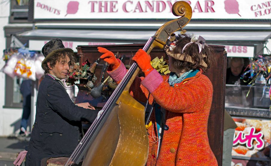 This roaming musical duo brings an eye-catching fusion of engineering and eccentric artistry to your outdoor event