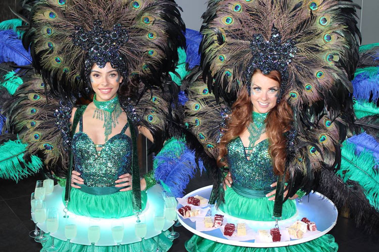 An act that is hard to miss, our versatile peacock performers come with diverse variations to perfectly suit any occasion. Whether you're booking a solo peacock or the full lineup with LED canapé tables and champagne dress, our beautiful peacocks will dazzle all your guests and provide stunning photo opportunities.