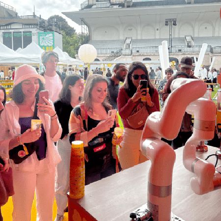Based in Lyon, the robotic arm can be transported to events across Europe, including parties, brand launches, conferences and corporate events