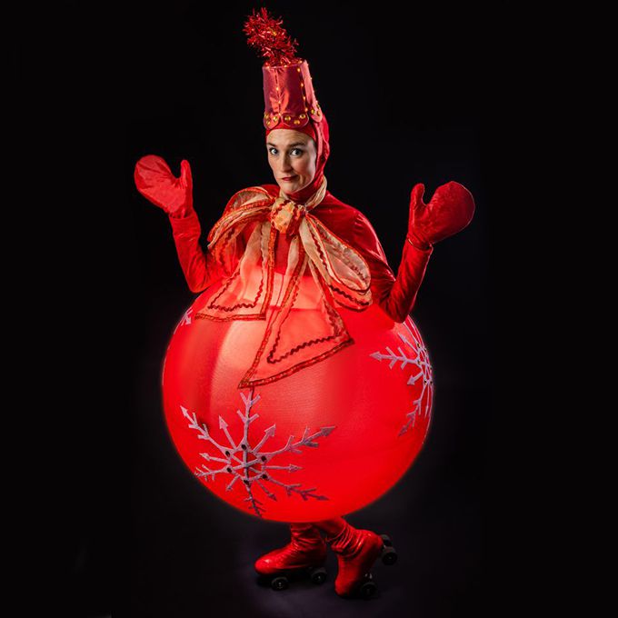 Bauble costumes are fitted with LED lights for a festive glow that is perfect for evening events and Christmas light switch-ons