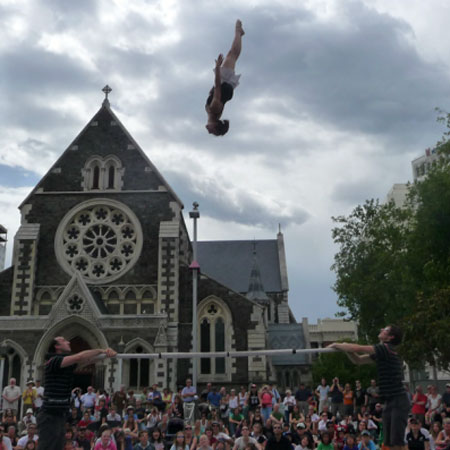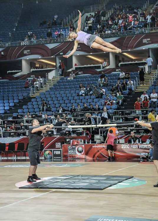Besides their TV appearances, our acrobats hold the Guinness World Record for the Most Consecutive Backflips on a Russian Bar. Our female acrobat completed 39 backflips in three minutes, pausing for no more than five seconds each time!