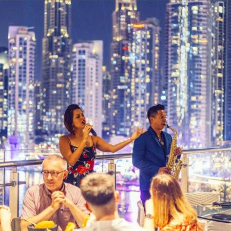 Our female singer and male sax player impress guests with their powerful vocals and saxophone skills, as well as their ability to perform in both Spanish and English.