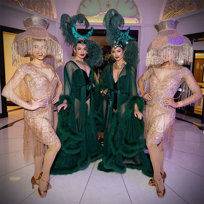 Hire between 4-20 Scarlett Dolls who will start by providing a roaming set to greet guests as they arrive at your event. We have a catalog of roaming or meet-and-greet costumes for you to choose from, such as our roaming champagne dress, bubble sphere performer or showgirls, each option tailored to suit a variety of themes that coincide with your event.