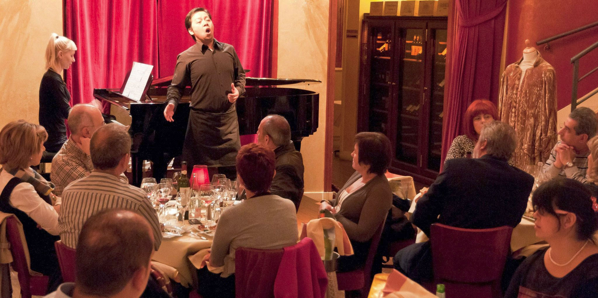 Between courses, the opera stars of tomorrow perform some of the greatest operatic classics, offering a truly unique experience. Opera experts everywhere acknowledge the outstanding vocal qualities of these singers.