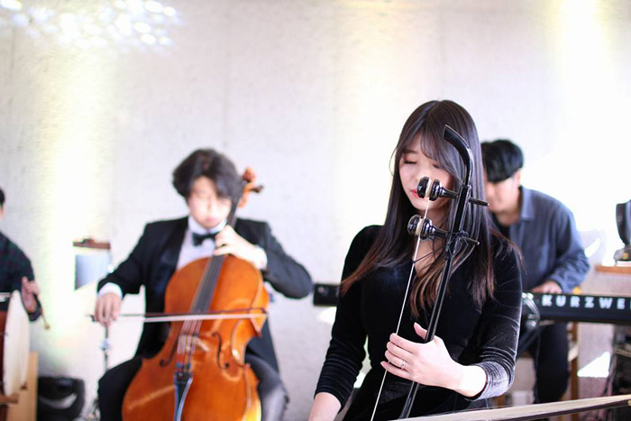 The South Korean Fusion Band stays true to its cultural roots by focusing their live performances on traditional Korean instruments such as the gayageum, haegeum, and a mix of Western and Korean percussion instruments. These are complemented by the cello and electric piano, creating a distinct band sound.