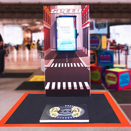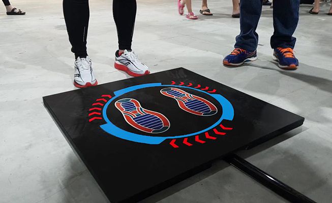 Guests step on the platform and then speed walk as fast as they can - they can play against each other with their progress tracked on a large screen