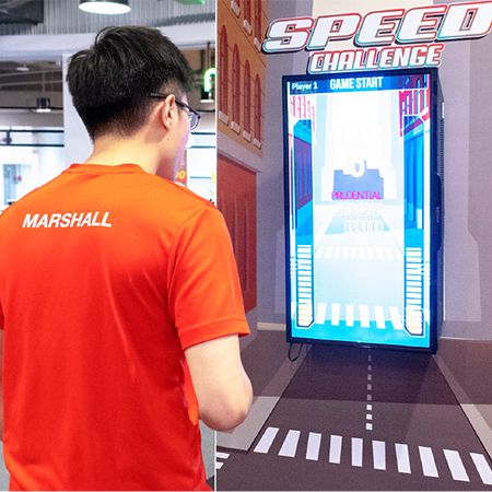 Great for fitness challenges or sports-themed activations at malls or festivals, the set-up can be fully branded and allows for data collection