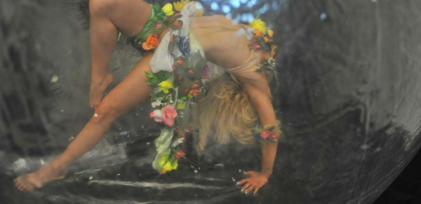 This act creates an amazing visual spectacle, as an acrobat enclosed in a giant transparent bubble delivers a dynamic performance on water. Ethereal and beautiful, this show will leave audiences breathless.