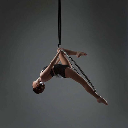 Captivating all your guests, this talented aerial performer delivers a unique show featuring a mesmerizing aerial spiral. Floating in mid-air, watch as our spiral pole aerialist twists her body through the metal spiral, creating stunning shapes and luxurious atmospheres.