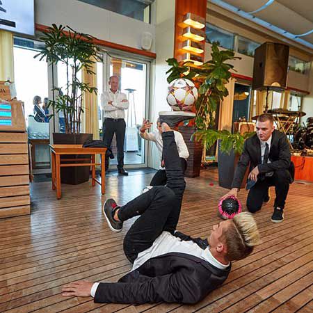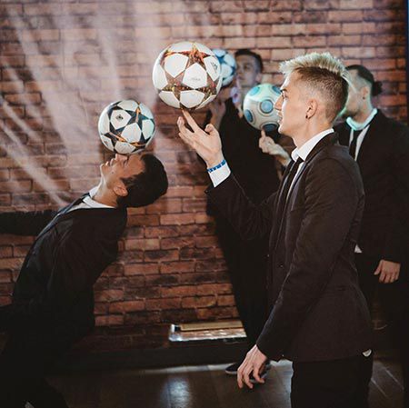 Available with the performers dressed in sharp suits or football jerseys, this versatile act is a fantastic addition to any sports event.