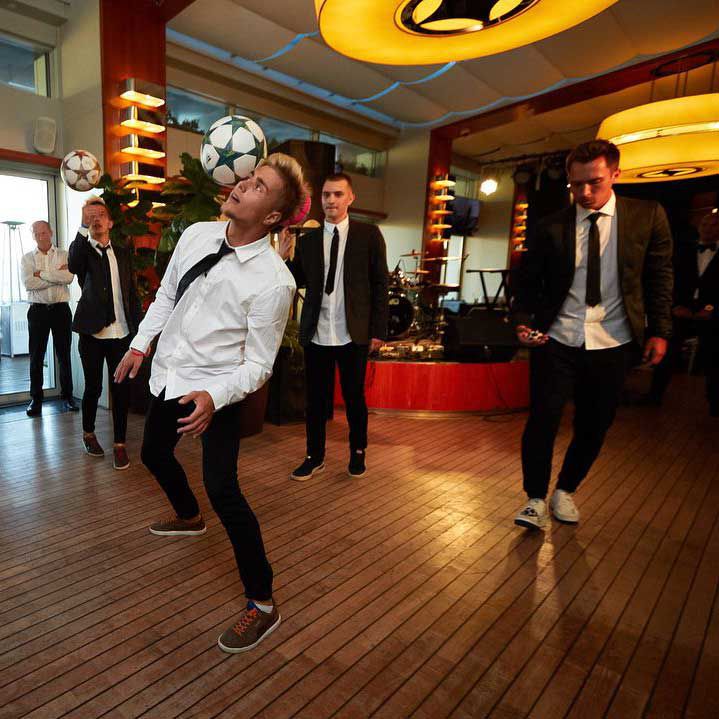 This choreographed sports freestyle show can include football, basketball, and footbag tricks to wow your guests.