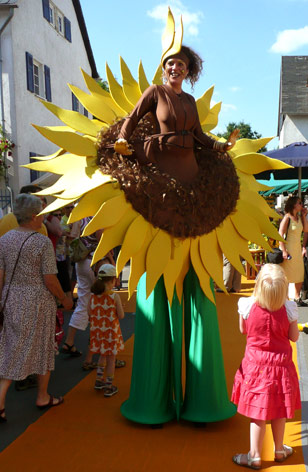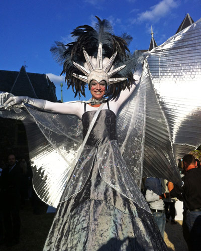 Some examples of characters include: A beautiful Blue water creature with huge wings who will dance with the crowd! A gleaming white stilt character with large, glittery wings and plenty of charm. A Forest Fairy who distributes rose petals for magical wishes and a stunning 2-meter wide sunflower, possibly the largest in the world, spreading her petals and lifelong happiness!