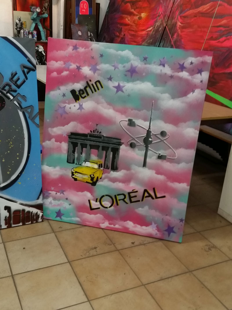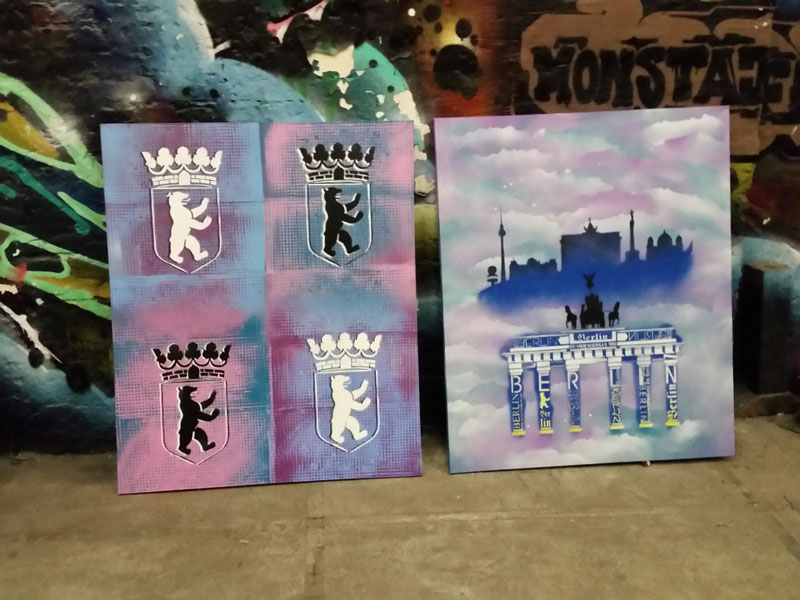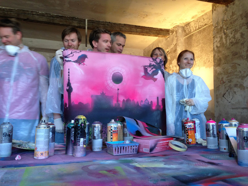Our fantastic workshop is located in a former abandoned margarine factory in the up-and-coming district of Lichtenberg. Team members will have ample opportunity to paint and get instructions on various street art & graffiti techniques from both local and international artists, using the highest quality materials. It's a great solution for a corporate reward scheme or group incentive trip to Berlin. Our workshops also let clients explore creative approaches while working in a group, with the opportunity to create your company logo using stencil art in your branded colors. At the end of the workshop, your team will make their own canvas to take home as a keepsake of this exceptional Berlin art experience.