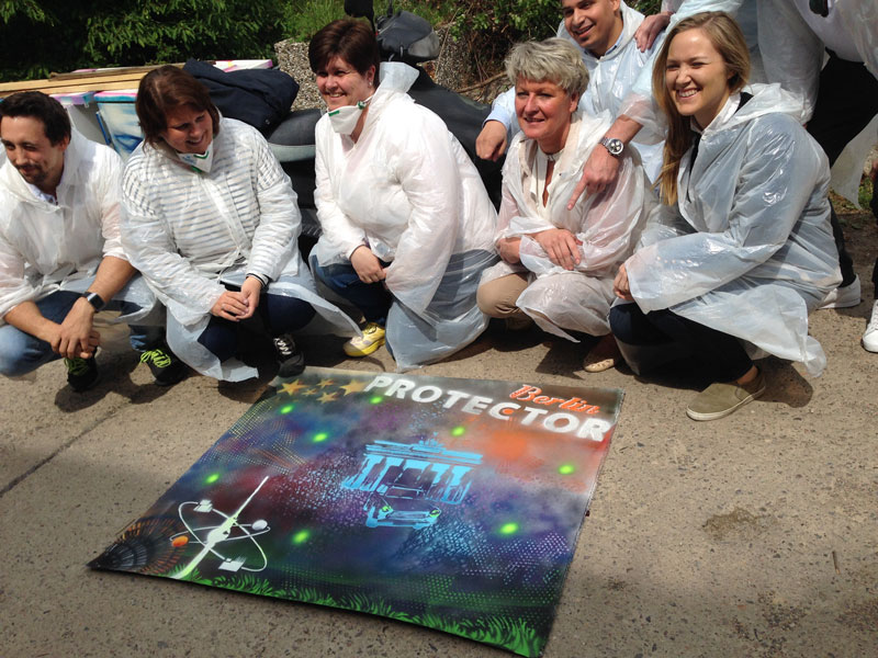 Our Street Art Tour & Workshop offers a comprehensive professional workshop & tour, delivering an extraordinary, all-inclusive Berlin experience. It's in a unique location and combines an activity with a tour—an especially fun team building activity, with the option of creating a joint artwork on a large canvas, which is perfect as a corporate incentive for company away days in Berlin.