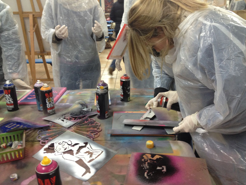 - Possibility of taking home your own stencil art canvas