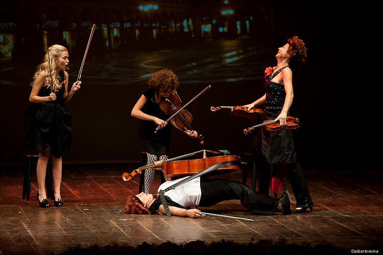 String Quartet Tuscany, known for their theatrical performances and thrilling shows, maintain an intense concert schedule with classical repertoire, studied under Franco Rossi of the Quartetto Italiano.