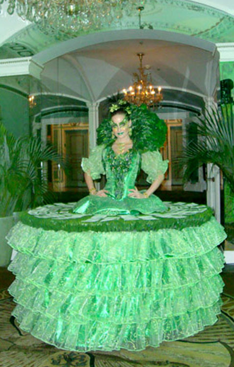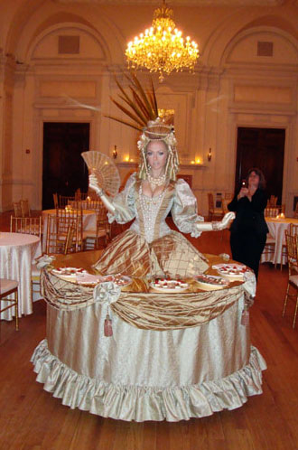 Offering a magically surreal yet functional way to present hors d'oeuvres, desserts, place cards, or party favors, Strolling Tables are guaranteed to wow your guests. Each character brings an outrageous yet sophisticated touch to any party.