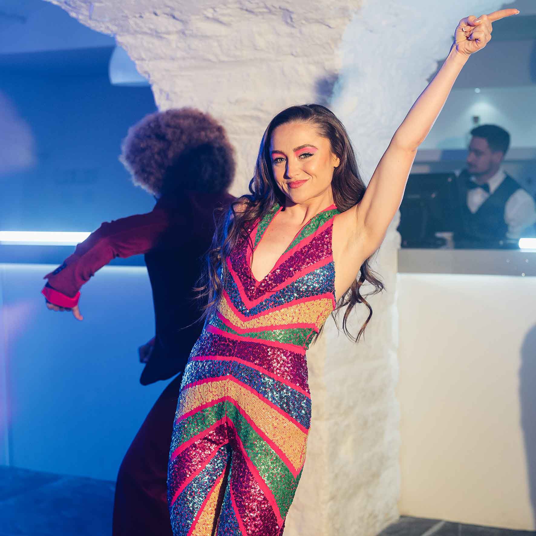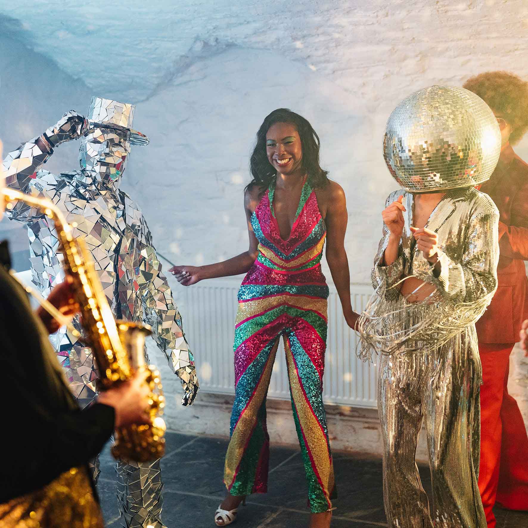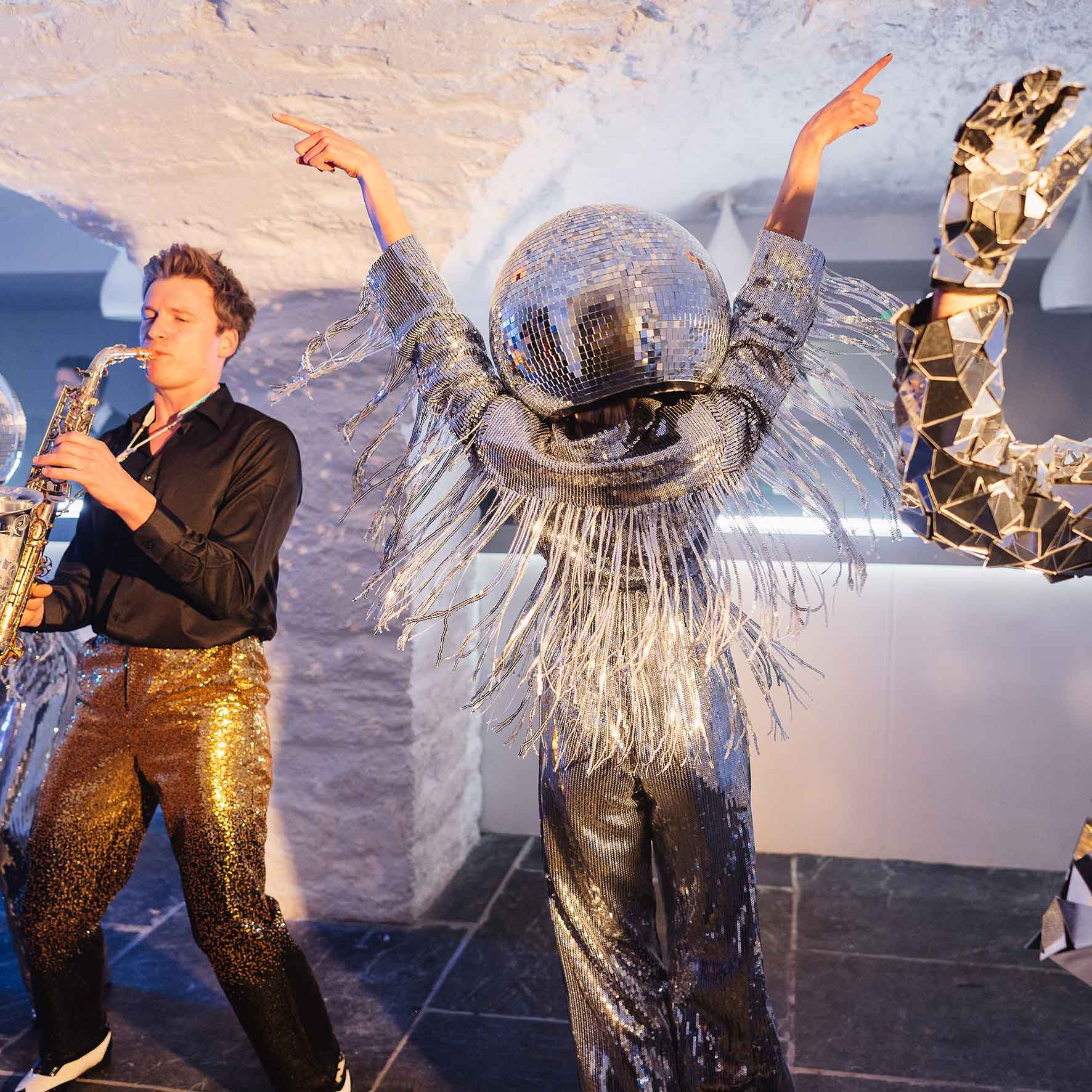 As the doors open to your event, our show team will be positioned around the venue dressed in stunning Disco-themed costumes that can include stilt walkers, ambient dancers, mirror men, and a 70s champagne dress. A fabulous photo opportunity for guests to enjoy as well as immersive them into the theme of the event.