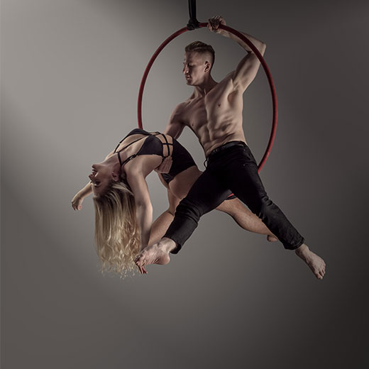 An amazing aerial duo who soar through the air, delivering breathtaking performances