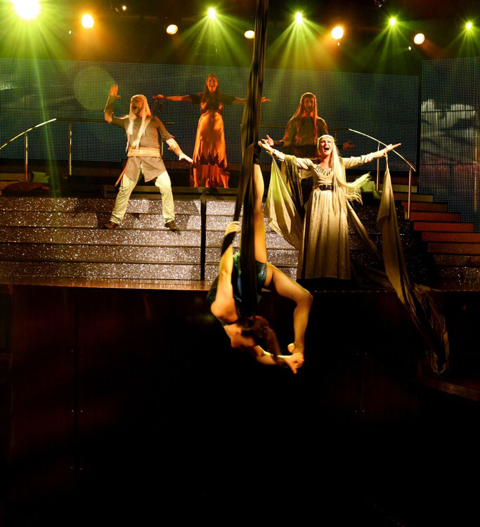 A remarkable circus performer with a multi-skilled routine that combines her talents in aerial silks and slack wire to create a showstopper performance offering the full package.