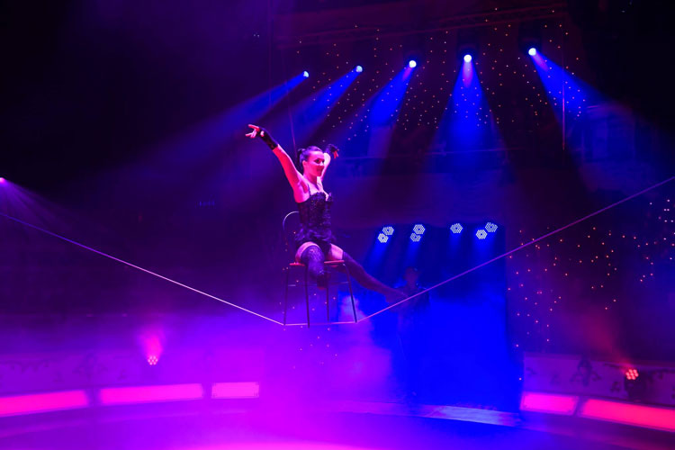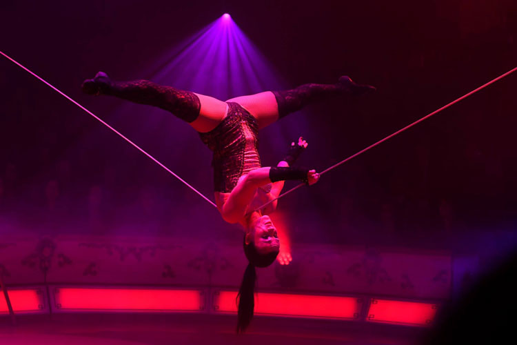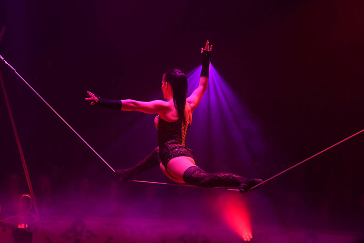 A sizzling slack wire performer who will get your hearts racing captivates her audience with her sexy routines and daring choreography as she slinks on and off her slack line, pulling incredible stretches and pushing her balance to the limit.