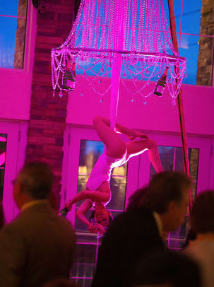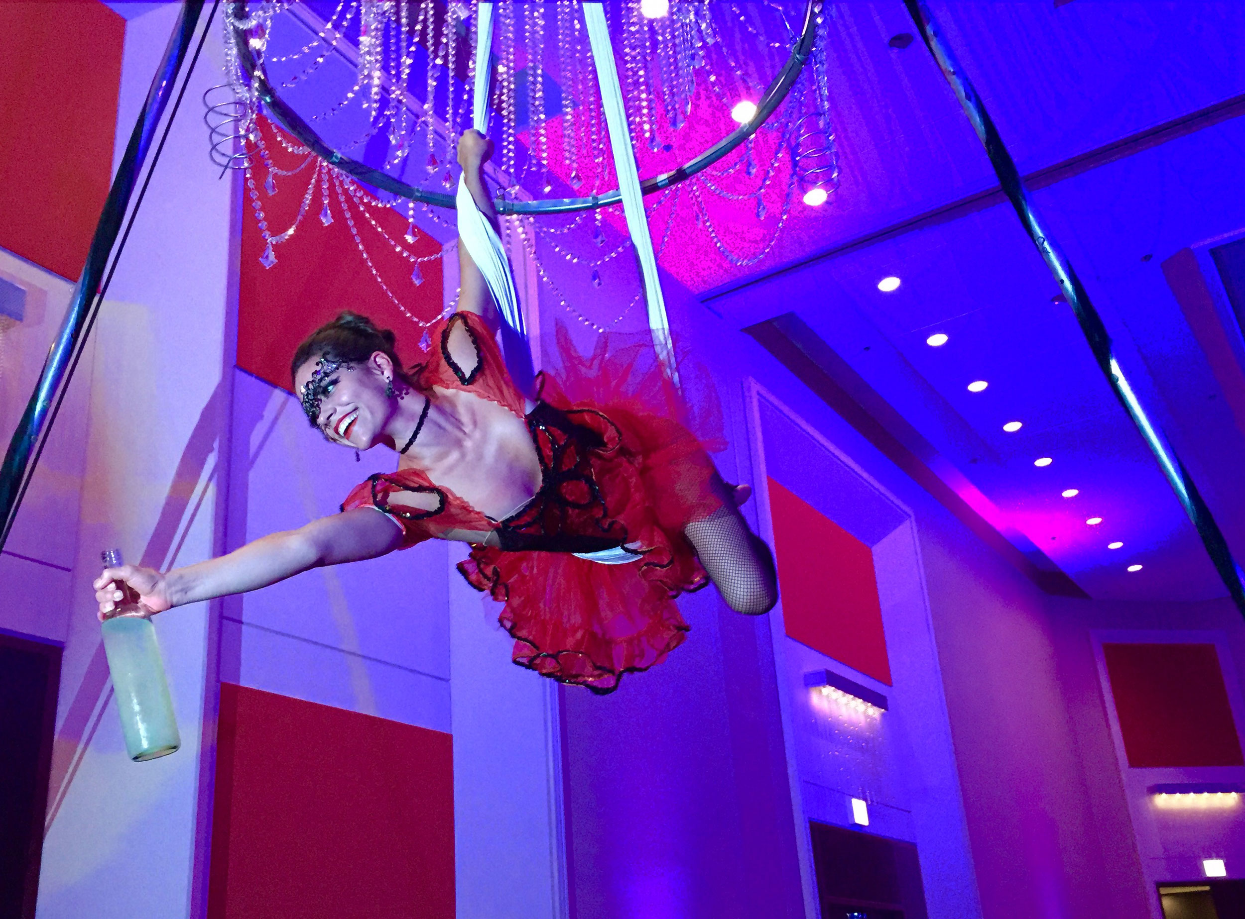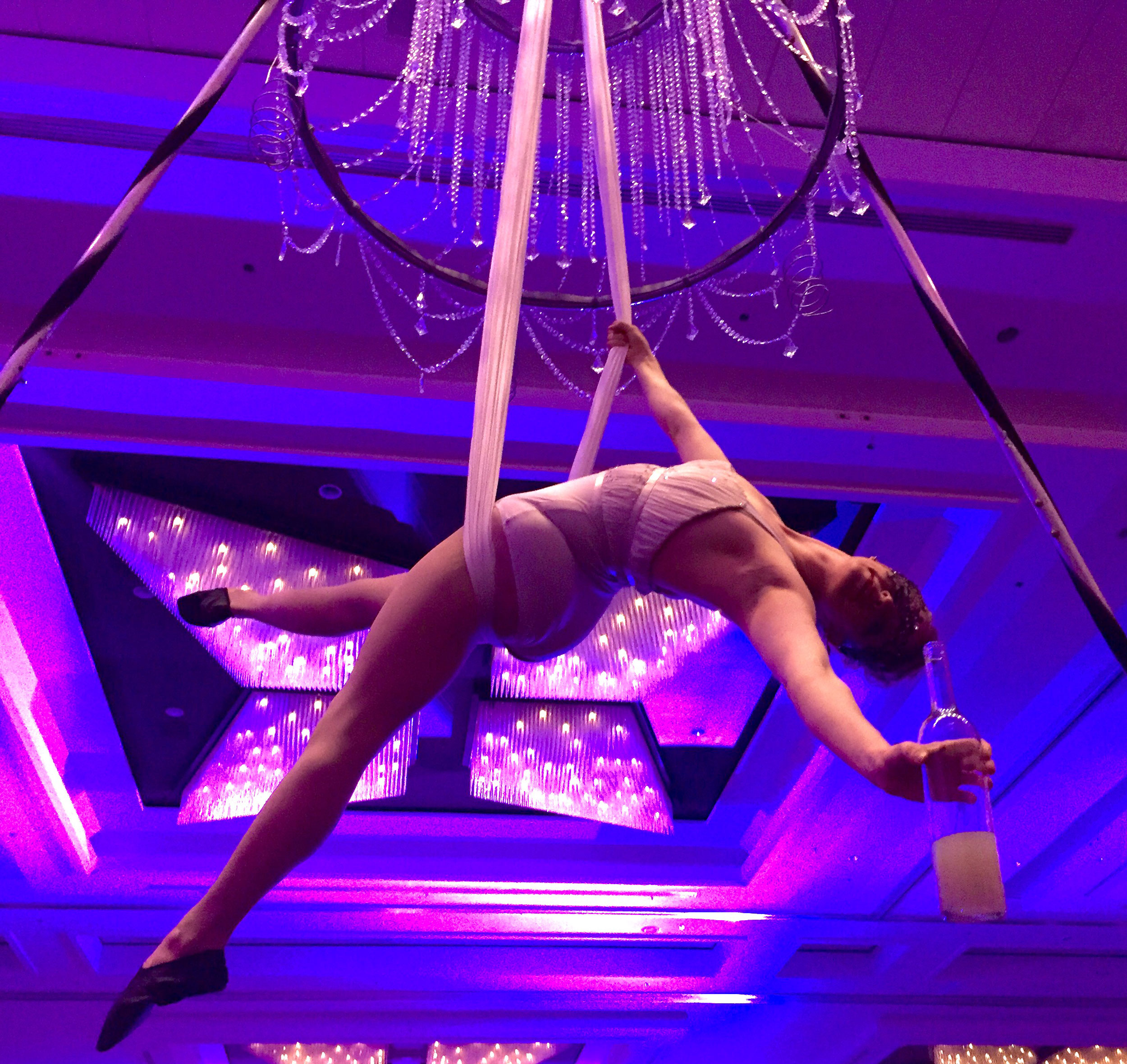 While suspended high in the air, our beautiful aerialists will carefully greet and serve your special guests with Champagne or any drink of your choice!