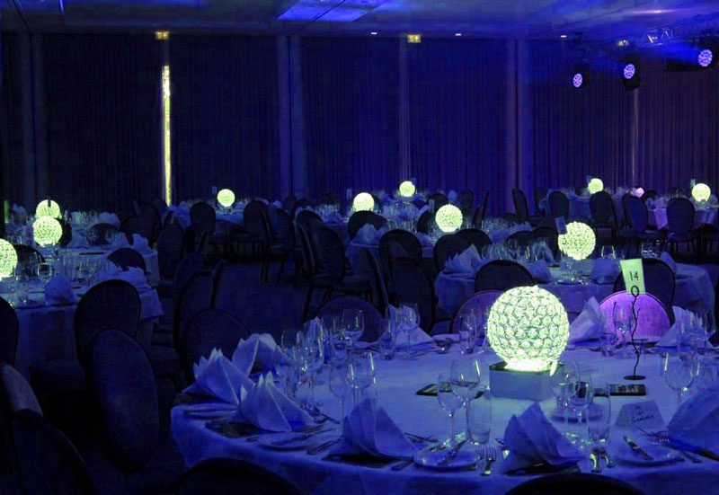 With the ability to control table centerpieces at the touch of a button, they can flash in unison or produce a wave of color that sweeps across your venue. Imagine dimming the room in anticipation during an awards ceremony before a sudden color change, or create a moving fire or water effect with the lights.
