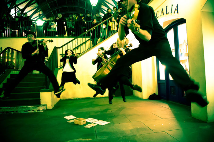 Highly sought after for live performances, our string quintet has made a name for themselves as a roving band, putting on fun shows with plenty of audience participation in prestigious locations like Covent Garden. Combining their classical style and skilled musicianship with smart humor, these lively artists effectively engage audiences wherever they perform. With an extensive repertoire of traditional tunes like 'Pachabel’s Canon' as well as unique string covers, the interactive band can also learn specific songs to make your first dance or celebration truly unique.