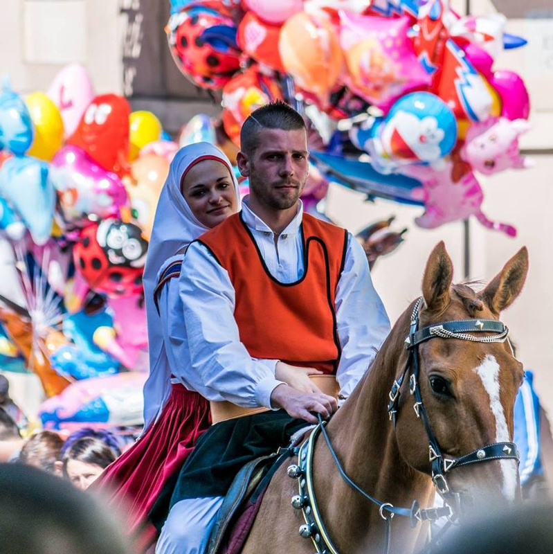 Available in different lineups, you can book both male and female dancers for your special occasion. Additionally, this traditional Sardinian act can be tailored to different briefs. As shown in the pictures above, these performers can even ride a horse upon request!