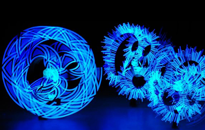 The UK Digital Poi Shows can be adapted for any occasion or venue. The LED poi performers can deliver their acts either indoors or outdoors in the darkest conditions possible for the best impact. The 100% customizable LED poi show can feature multiple performers or a single performer, all in one spot, incorporating dance, or offering a full walk-around service, bringing fascinating LED entertainment up close to your guests.