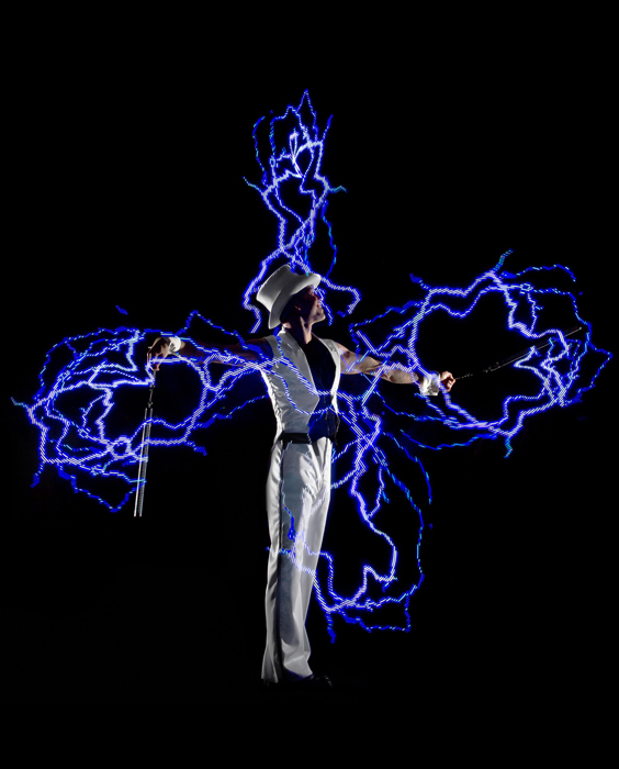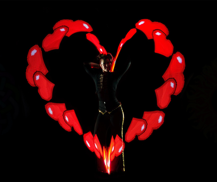 Along with high-tech props, the LED poi performers have a wide range of costumes, from formal to futuristic. They offer the option to tailor their appearance to match your event's theme.