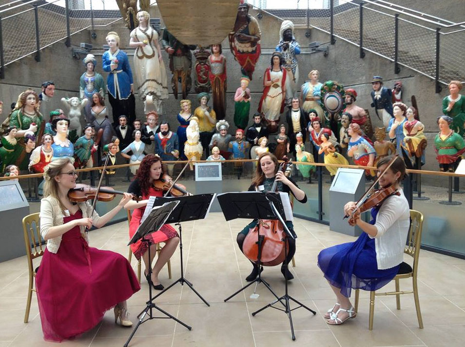Their eclectic repertoire features both classical and modern pieces by Bach, Debussy, Handel, Mozart, The Beatles, Elbow, Bruno Mars, and Led Zeppelin, to name just a few! Equally comfortable performing with modern instruments or Baroque, they can offer a range of themed performances on request including medieval/period, nautical, and Victorian/steampunk.