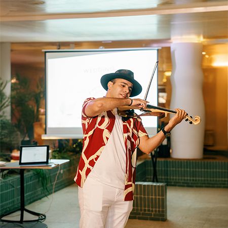 This electric violinist is a top choice for weddings, private events, and high-end venues, offering a unique blend of elegance and dynamic energy
