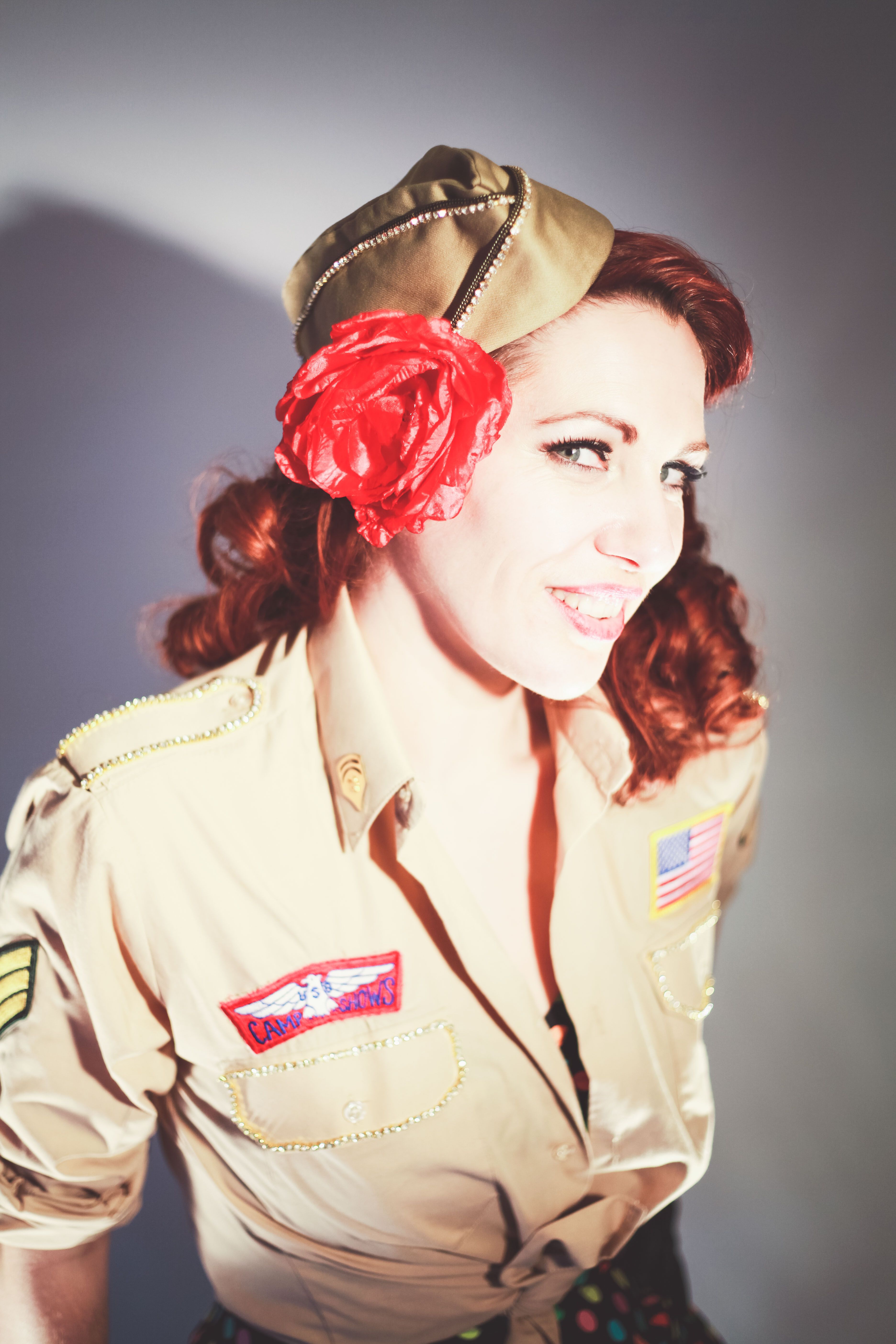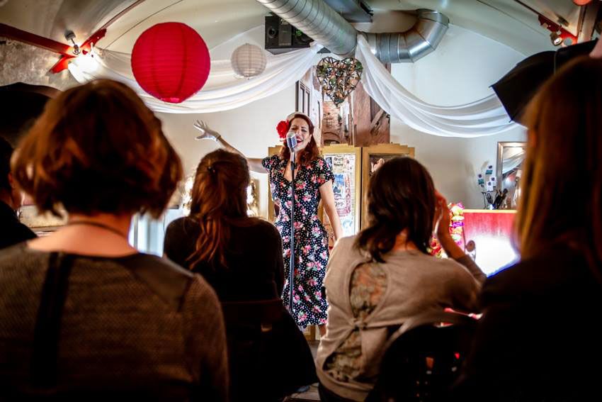 Since then, Sophie has developed a stunning vintage show that takes audiences back to a time of glitz, glamour, and swinging jazz tunes! With an array of pencil skirts, red lips, vintage microphones, and sweet vocals, Sophie hits the stage singing songs by Cole Porter, Gershwin, Peggy Lee, and The Andrew Sisters. She has a range of gorgeous costumes and retro props for clients to choose from, completing her irresistibly vintage show. Sophie even offers a charming retro-chic Christmas set.