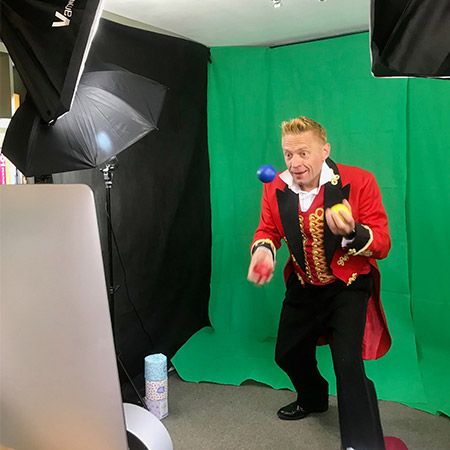 These circus skills workshops are usually live-streamed over Zoom, but our professional circus performer and host can also create a pre-recorded video for you if that fits your online event better.