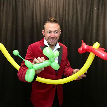 These workshops are incredibly engaging and a lot of fun, offering either juggling or balloon modeling options. Each session kicks off with a humorous demonstration by our host, who then guides guests through the activity with helpful hints and tips. If you're doing the balloon modeling session, you'll learn to create various balloon models like a dog and a flower! If you choose the juggling workshop, you'll be shown how to master an impressive 3-ball cascade. With all these new skills, keep an eye on your event guests—they might just run off to join the circus!