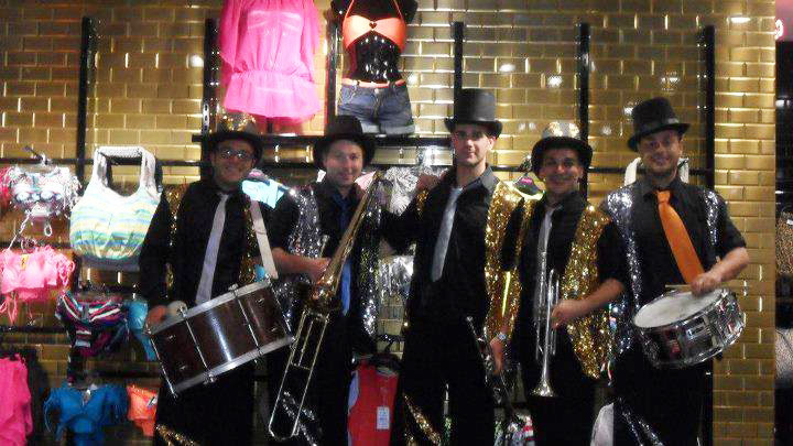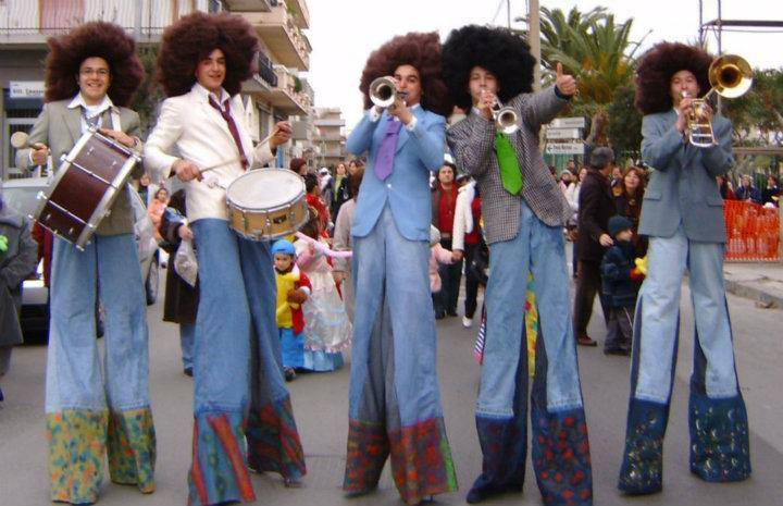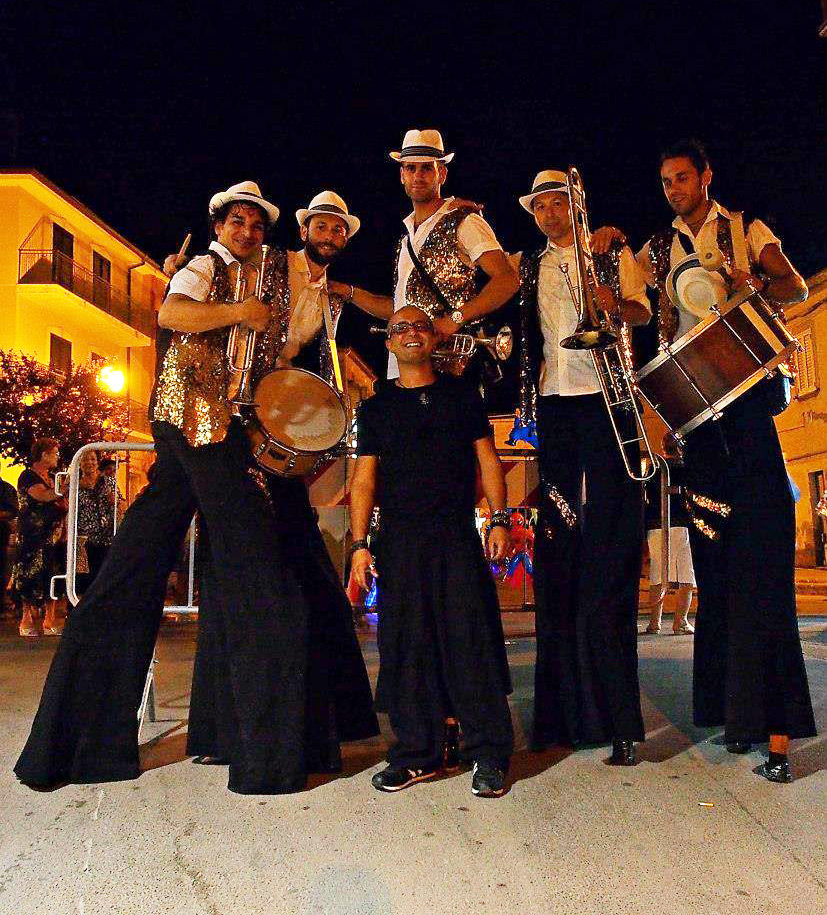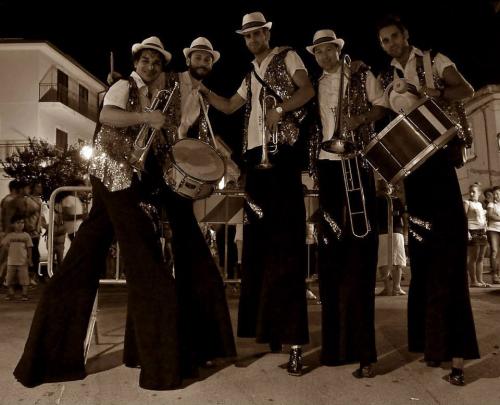 Meet the Walk Around Stilt Band, a unique group of 5 talented musicians based in Catania, Italy. Their repertoire covers everything from classical music and street gang tunes to Eastern European melodies, 1940s dixieland, and popular songs from southern Italy.