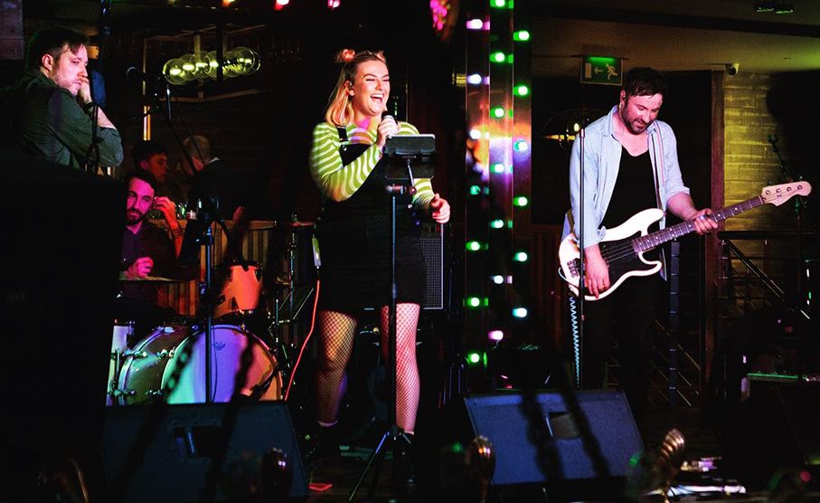 The band, composed of a lead female vocalist, brass player, guitarist, and bass player, will make your event unforgettable