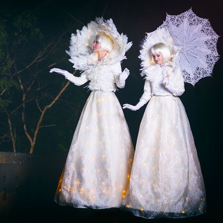 Blending 1970s disco and avant-garde costume design to create a truly unique roaming option, our Glitter Stilt Walkers are perfect for Christmas-themed events, Christmas light switch-ons and festivals.